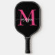 Hot Pink Black Modern Script Name Girl Monogram Pickleball Schläger
