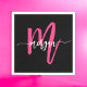 Hot Pink Black Modern Script Name Girl Monogram Serviette
