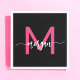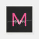 Hot Pink Black Modern Script Name Girl Monogram Serviette