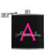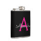 Hot Pink Black Script Name der Girl Monogram Flachmann