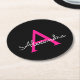 Hot Pink Black Script Name der Girl Monogram Runder Pappuntersetzer