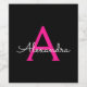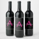 Hot Pink Black Script Name der Girl Monogram Weinetikett