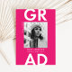 Mit unseren modernen Foto-Abschlussankündigungen kündigen Sie Ihren Abschluss stilvoll an! Die trendigen Graduierungsankündigungen zeigen das Foto Ihres Absolventen mit "Grad" in fett weißem Schriftzeichen auf einem soliden, heißen rosa Hintergrund. Personalisieren Sie die Titelseiten der heiß rosa Abschlussankündigungen, indem Sie den Namen, den Namen der Schule und das Abschluss-Jahr des Absolventen hinzufügen. Die Ankündigung kehrt sich um, um ein rosa geometrisches Muster mit weißem Hintergrund anzuzeigen.