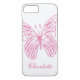 Ein rosa Schmetterling in einem extravaganten filigranen Design betont Ihren Namen auf diesem iPhone 7 Gehäuse und macht es zum perfekten mädchenhaften Accessoire.