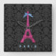 Hot Pink Eiffelturm in Imitate Glitzer Quadratische Wanduhr