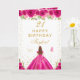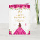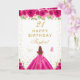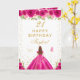 Hot Pink Floral Brown Haar Girl Happy Birthday Karte