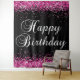 Hot Pink Glitter Black Happy Birthday Wandteppich