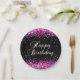 Hot Pink Glitzer Black Happy Birthday Pappteller