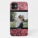 Nimm ein Foto und hol dieses iPhone 11-Gehäuse oder ein Samsung-Gehäuse mit deinem Lieblingsbild, deinem Namen und einem heißen rosa, Glitzer Hintergrund.