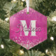 Hot Pink Glitzern Bokeh Monogram Ornament Aus Glas