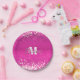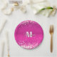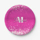 Hot Pink Glitzern Bokeh Monogram Pappteller