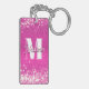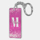 Hot Pink Glitzern Bokeh Monogram Schlüsselanhänger