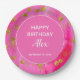 Funkelnd und lustiges heiß rosa mit goldfarbenem Glitzer, individueller Geburtstagsfeier Teller personalisiert mit Ihrem Namen und Party Datum. Text-, Schriftart- und Schriftart-Farben sind vollständig anpassbar, also mischen Sie die Dinge zusammen und machen Sie es zu Ihrem eigenen.