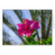 Diese Karte mit einem heißen rosa Hibiskus ist perfekt für viele Anlässe geeignet. Im Hintergrund befinden sich die Fronten einer Reisenden-Palme. Auf der Rückseite der Karte ist ein weiterer schöner rosa Hibiskus.