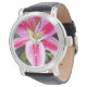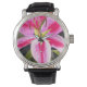 Hot Pink Lilie Blume Aquarell Pop Blume Armbanduhr