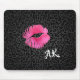 Hot Pink Lipgloss Kiss Black Leopard mit Monogramm Mousepad