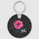 Hot Pink Lipgloss Kiss Black Leopard mit Monogramm Schlüsselanhänger