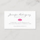 Ein auffälliges, rosa Lippenstift küsst ein wunderschönes Design-Template für Visitenkarten. Es ist bereit, personalisiert zu sein, Ihre Vorlieben und Ihren persönlichen Stil zu Anzug, und ist perfekt als Makeup Künstler, Kosmetologe, Schönheitsberater oder Cometic Boutique Visitenkarte.