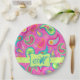 Hot Pink Modern Paisley Muster Monogram Pappteller