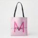 Tragen Sie Ihr Wesentliches stilvoll mit unserem Hot Pink Modern Script Girly Monogram Name Tote Bag! Diese Tasche ist mit einem kühnen, rosa Design personalisiert und in einem schicken, modernen Drehbuch für ein trendiges, individuelles Aussehen gehalten. Ideal für Einkäufe, Schulen oder den Alltag, bietet es viel Platz und eine langlebige Konstruktion. Mit robusten Griffen und einem modischen Design verbindet diese Tote-Tasche Praktikabilität mit Flair und macht sie zu einem Muss-Accessoire für unterwegs.