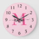 Hot Pink Modern Script Girl Monogram Name Große Wanduhr