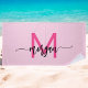 Hot Pink Modern Script Girl Monogram Name Strandtuch