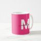 Personalized Modern Glamorous Magenta Hot Pink Initial Name Monogram Coffee Mug. This stylish mug combines a modern minimalist vibe with a glamorous, personal touch, perfect for any coffee or tea lover. Featuring bold white initials on a vibrant magenta hot pink background and your name in sleek black typography, the luxury monogram appears on both sides for a standout look from every angle. With a chic and sophisticated feel, this mug makes an ideal gift for birthdays, housewarmings, holidays, or just because. It’s also a great choice for adding a vibrant, personal touch to your morning coffee routine.