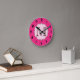 Hot Pink Quarterfolie Latti Monogram Wall Clock Runde Wanduhr