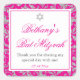 Hot Pink Silver Glitzer Swirl Damask Bat Mitzvah Quadratischer Aufkleber