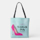 Eine Tasche für einen Junggeselinnen-Abschied. Ein High Heel Stiletto-Schuh in heißrosa. Rosa Konfetti sprang oben entlang. Set auf einem minzgrünen Aquarell.