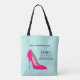 Eine Tüte mit einem Bild eines rosa Stiletto-Schuhs. Set auf einem minzgrünen Aquarell. Chic und glamourös. Personalisieren Sie Ihre Daten mit Ihrem Namen, Ihrer Website, Ihrem Titel oder einem anderen Text, den Sie verwenden möchten.
