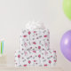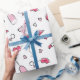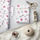 Weißes Verpackungspapier mit Doodles zum Thema Braut in schwarz, blassrosa und heiß rosa für ein Brautparty oder einen Junggeselinnen-Abschied. Das Doodle-Muster umfasst Diamantringe, Cocktailbrillen, glänzende Lippen, Ballons, Herzen und Lippensticks.