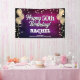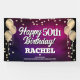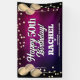 Ein lustiges Bannerzeichen für innen oder außen mit festlichen goldgelben Metallballons auf beiden Seiten des Designs mit funkelnd, goldgelben Metallkonfetti auf einem reich strukturierten, heißen rosa & lila Hintergrund für Ihr personalisiertes Geburtstagsbanner. Dieses Produkt verdoppelt sich als wunderbarer Meilenstein-Geburtstagssicheres.