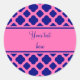 Hot Pink und Navy Blue Quatrefoil Pattern Runder Aufkleber