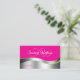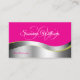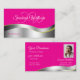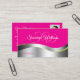 Hot Pink Wavy Silver Deco mit Initials Foto Visitenkarte