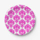 Hot Pink & White Damask Chic Elegantes Party Pappteller