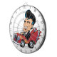 Karikatur eines 50er Hot Rodders in einer Lederjacke und pompadour Haar geschnitten. Sie können jedes Produkt zum Geburtstag oder Retro-Jubiläum individuell anpassen. Ideal für den Oldtimerliebhaber oder das Kind der 50er Jahre.