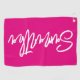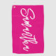 Hot Rosa und White Brush Script Golfhandtuch
