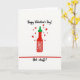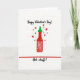 This Valentine's Day card features a hot sauce bottle in the center, with a bright red body and a green cap against a plain white background. Small red hearts float up and out from around the bottle, giving the scene a fun “spicy love” feel ❤️. The bottle label has a simple white starburst shape that stands out on the red bottle. At the top, the text says “Happy Valentine’s Day!” in black hand-drawn script, placed above the bottle. Near the bottom, a thin red line sits above the words “Hot stuff!” written in black, easy-to-read letters. The limited colors—red, green, black, and white—keep the message clear and focused 💌🍫.