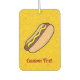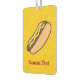 Cartoon-Abbildung von Hotdog. Junk Food Kontur Icons Gelbe Muster Hintergrund. Benutzerdefinierter Text auf beiden Seiten.