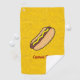 Hot Dog Icon. Junk Food Kontur Icons Gelbe Muster Hintergrund. Eigener Text.