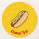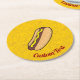 Cartoon-Abbildung von Hotdog. Junk Food Kontur Icons Gelbe Muster Hintergrund. Eigener Text.