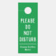 Hotel bitte nicht stören Schild. Auf der Rückseite steht: Bitte saubere mein Zimmer. Ändern Sie den Wortlaut und tragen Sie Ihren eigenen Hotelnamen ein. Grüner Hintergrund.