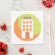 Eine Ikone eines Gebäude mit dem Wort Hotel darüber. Dieses Design sieht wirklich effektiv aus für dieses Papier Napkins