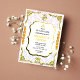 Feiern Sie den Beginn eines neuen Kapitels in Ihrem Leben mit unserer wunderschön gestalteten indischen Einladungskarte. Unsere Einladungskarte mit vielen schönen Symbolen wie dem Ganesha-Logo, dem Kalasha-Logo und dem Chakra mit einem om ist der perfekte Weg, Ihre Lieben zu Ihrer Griha Pravesh-Zeremonie einzuladen. Auf der Rückseite der Einladungskarte befindet sich ein Bild des jungen und hübschen Gottes Krishna und ein anpassbarer Text, der "Jai Shree Krishna" sagt. Die lebhaften Farben und die aufwändigen Designs werden das Wesen der Veranstaltung einfangen und Ihrer Einladung eine Touch Eleganz verleihen. Die Einladungskarte verlasse mit ihrem hochwertigen Papier und dem Druck einen bleibenden Eindruck bei Ihren Gästen. Die Karte soll die Bedeutung von Tradition und Spiritualität in der indischen Kultur widerspiegeln. Das Ganesha-Logo repräsentiert die Beseitigung von Hindernissen, während das Kalasha-Logo für Überfluss und Wohlstand steht. Das Chakra mit einem Unheil bedeutet Harmonie und Einheit.