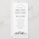 Ein Hochzeitsprogramm zum Thema Deko für eine Hochzeit in der wunderschönen Stadt Houston, Texas. Diese Karte zeigt die einzigartige Skyline der Stadt mit ihrem Namen darunter. Hier können Sie sich unter Ihren Hochzeitstag-Informationen in einem passenden, offenen Stil entspannen. Auf der Rückseite ist eine weiche nickelgraue Farbe mit mehr Hochzeitsdetails in weißem Text, um die Vorderseite zu ergänzen. Eine stilvolle Art, außerhalb der Stadt ansässige Gäste willkommen zu heißen und ihnen hilfreiche Informationen über Ihre Hochzeitsfeierreihe zu geben.
