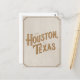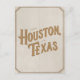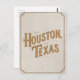 Ein Vintages Design mit den Worten "HOUSTON, TEXAS" in einem fett formatierten, serifenlosen Schriftart mit texturiertem Hintergrund. Das Design ist durch eine Dekoration gerahmt, die dem Hotel ein klassisches und zeitloses Ambiente verleiht.