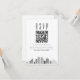 Eine minimale Hochzeitsrsvp QR-Code-Karte mit einer schönen stylisierten Skyline, die die Stadt Houston, Texas repräsentiert. Ersetzen Sie den QR-Code durch einen Link zu Ihrer Website, um Ihren künftigen Gästen die Beantwortung Ihrer Hochzeitsfeier zu erleichtern.