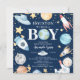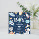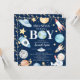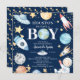 Adorable Baby Boy Dusche Einladung mit einem Astronauten, Raketenschiffen, Planeten & Sternen Set auf einem dunkelblauen Hintergrund. Dreh unseren niedlichen Jungs Einladung zu einem koordinierenden Shooting Star zurück. Besuchen Sie unseren Shop für unsere gesamte Linie inklusive der passenden Verlosung und Buchkarten.