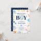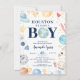Adorable Baby Boy Dusche Einladung mit einem Astronauten, Raketenschiffen, Planeten & Sternen Set auf weißem Hintergrund. Dreh unseren niedlichen Jungs Einladung zu einem koordinierenden Shooting Star zurück. Besuchen Sie unseren Shop für unsere gesamte Linie inklusive der passenden Verlosung und Buchkarten.